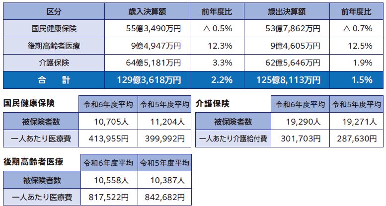*各特別会計の歳出決算額には、委託費や事務的経費なども含まれているため、被保険者数で割っても一人あたり医療費・給付費とは一致しません。