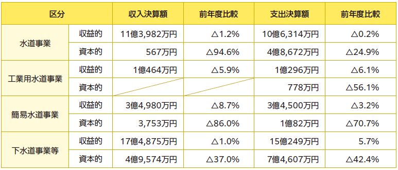 下水道事業等…汚水処理原価191円/立方メートル、使用料単価150円/立方メートル