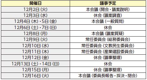 *すべて午前10時から開会します。12月定例会で審査される請願の提出期限は、11月25日(火)午後5時までです。