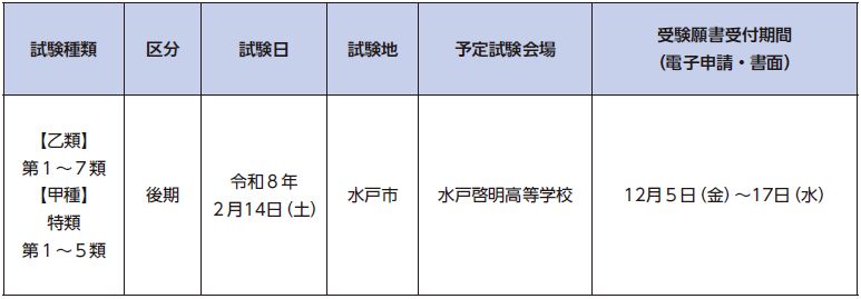 問合せ・申込み:(一財)消防試験研究センター茨城県支部〒310-0852水戸市笠原町978-25県開発公社ビル4階