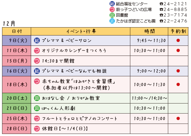 日時:火曜日 9:00~12:00 12/16、R8.1/20、2/24、3/24