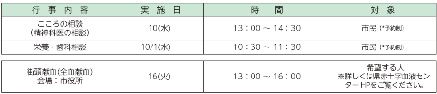 公民館クラブの作品展示やステージ発表、健康ブース、在宅医療に関する映画上映、プレママベビー相談コーナー、口腔がん検診(要予約)、フレイル測定会(要予約)など、総合福祉センターをまるごと楽しめる2日間です。