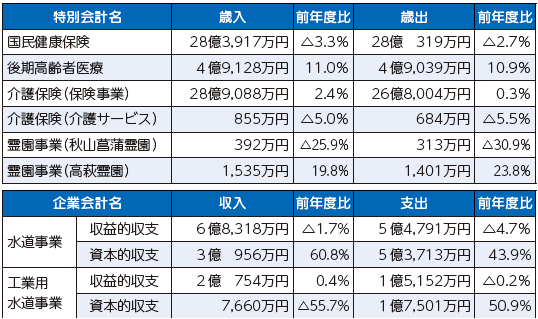 市は、特定の歳入で特定の事業を行う場合の資金管理を明確にするなどの目的で、独立して経理を行う特別会計による事業6つと企業会計による水道事業を一般会計とは別に会計管理しています。