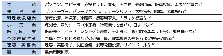 ▽償却資産の対象となるもの(業種別の例)