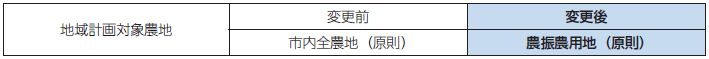 変更後は、原則農業振興地域内の農用地区域(農振農用地)が地域計画区域となります。