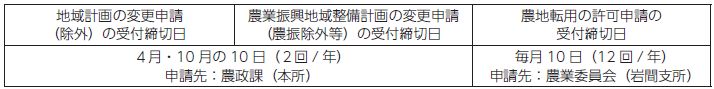 地域計画の策定以降、地域計画区域内の土地で農地転用を行う際は、事前に地域計画からの除外手続きが必要となっています。手続きを行う際は、締切日より前に、お早めにご相談ください。