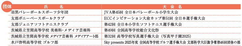 市では、スポーツ・文化の振興と競技力向上や文化意識の高揚を推進するため、全国大会以上(規定あり)の競技会に出場する個人と団体に「笠間市スポーツ・文化振興奨励金」を交付しています。