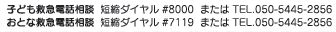 ※急な病気やケガで救急車を呼ぶか迷ったときは、以下をご利用ください。受診可能な医療機関もご案内します。24時間365日対応です。