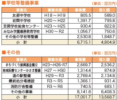 ※医療センターについては全体事業費約19億円のうち合併特例債対象のみ記載しています