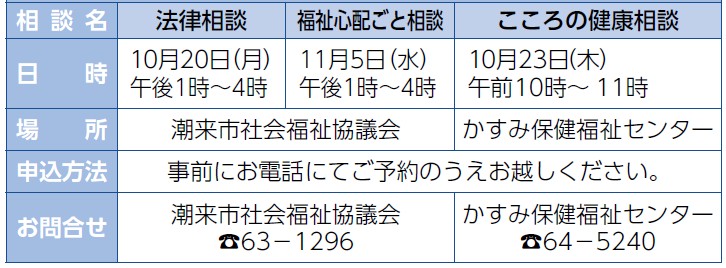 ■悩まずにまず相談を!各種無料相談(10月・11月)