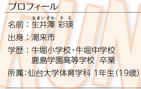 ■潮来の地元で育った大学1年生、生井澤 彩瑛選手。笑顔を絶やさず、仲間や家族に支えられながら、挑む世界への挑戦について伺いました。