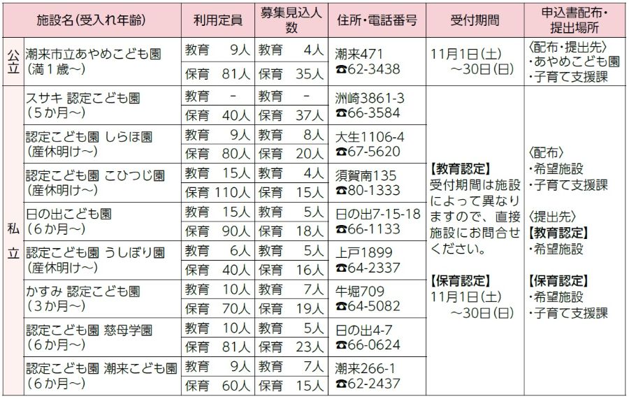 ※潮来市外の施設を希望する場合は、受付期間が異なりますのでお早めに施設の所在自治体へご相談ください。