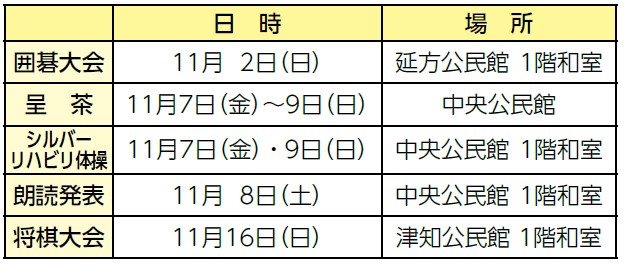 ※囲碁大会11月2日(日)、将棋大会11月16日(日)