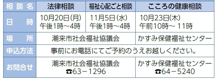 ■悩まずにまず相談を!各種無料相談(10月・11月)