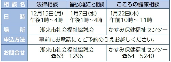 ■悩まずにまず相談を!各種無料相談(12月・1月)