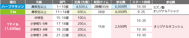 ※「陸連登録者の部」にエントリーされた方は、年齢別での表彰対象者になりません。