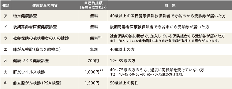 「肺がん検診」など、保険の種類を問わず、受けられるものもあります!