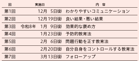 ※連続したプログラムになりますので、1回のみや途中の回からの参加はできません。