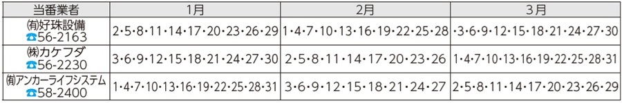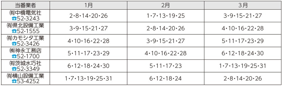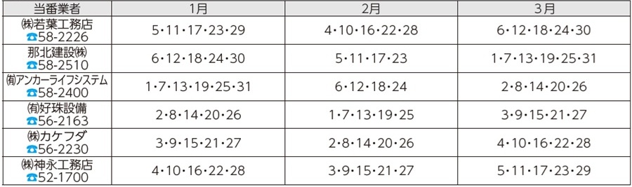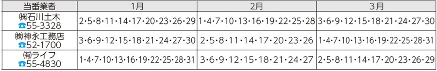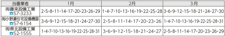 また、市の指定工事店で取引工事店がない場合は、下記の漏水当番にご依頼ください。