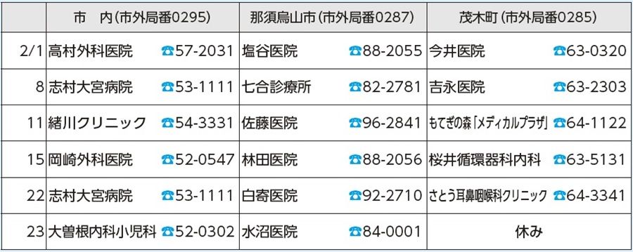 ・近隣市町村の医療機関については、直接お問合せください。また、常陸大宮市ホームページからも検索できます。
