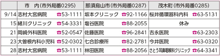 9/14~9/28 *病院名・電話番号