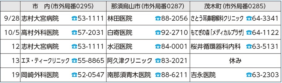 (当番医のやむを得ない都合により診療時間の変更や休診となることがあります)