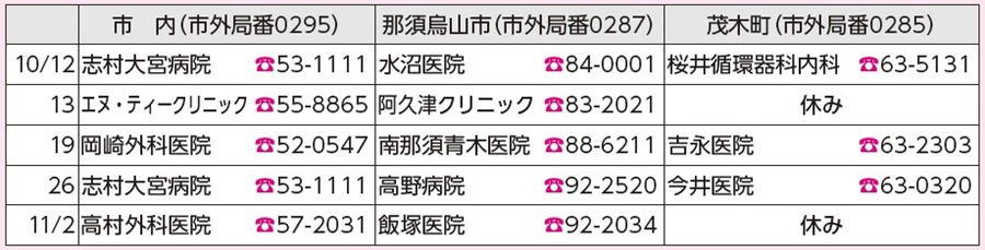 ・近隣市町村の医療機関については、直接お問い合わせください。また、常陸大宮市ホームページからも検索できます。