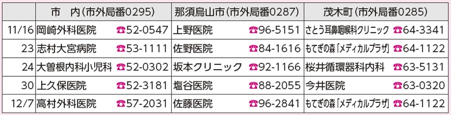 11/16~12/7 *病院名・電話番号