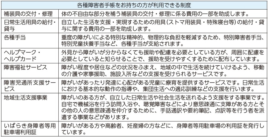 ※ここで紹介しているものは一部です。所得や障がいの程度・種類などによって、対象とならない場合もあります。