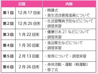 ・受講後に食生活改善推進員としてボランティア活動ができる方