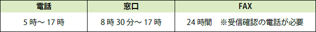 届出方法:電話・窓口・FAX のいずれかで届出・連絡してください。