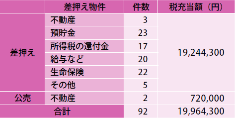 令和6年度に実施した滞納処分により、1,996万円が市税などの滞納金に充当されました。