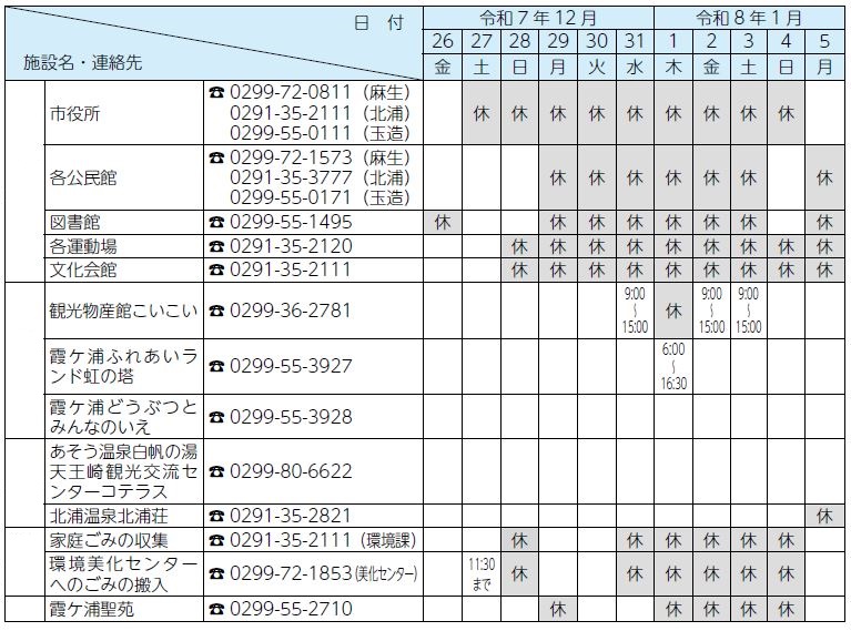 12月29日(月)~令和8年1月3日(土)は、休止します。