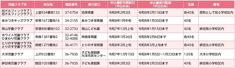 放課後児童クラブ(学童保育)は、保護者が就労等により昼間家庭にいない児童を対象に、授業終了後や長期休暇中に適切な遊びを通し児童の健全育成を図ることを目的としています。