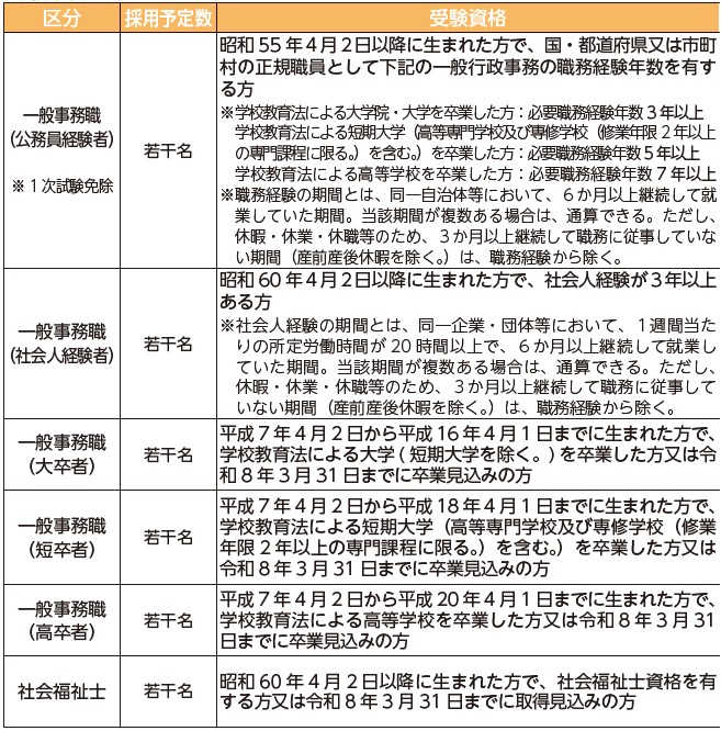 申込方法:職員採用試験受験申込者専用webサイトは、市HPからアクセスできます。詳細は市HPをご確認ください。
