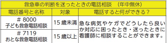 総務省消防庁によると、全国の救急車の平均到着時間は約10分と言われています。命を守るためには家庭内での事故予防が大切です。事故や急病で救急車を呼んだ方がよいか判断に迷う時は#8000や#7119を使用しましょう。