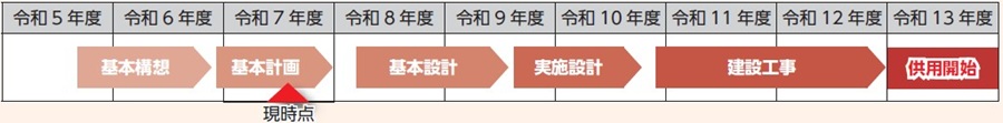 厳しいスケジュールとなっていますが、令和12年度末の竣工、令和13年度の供用開始へ向け整備を進めていきます。