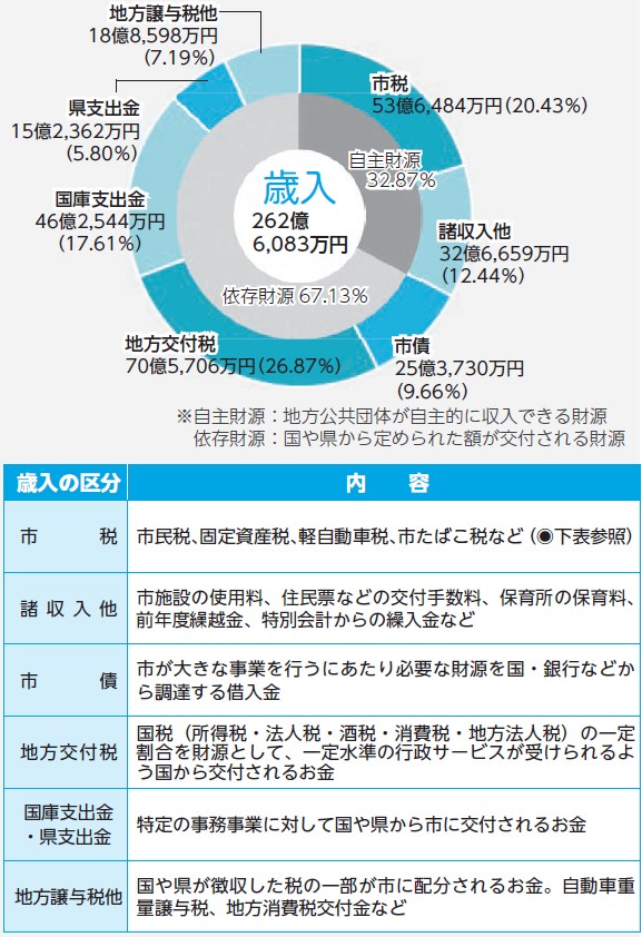 市が行っているさまざまな事業は、みなさまが納めた税金や、国・県からの支出金、市債(借入金)などを財源としています。令和6年度決算の概要を通じて、税金などがどのように使われたのかをお知らせします。