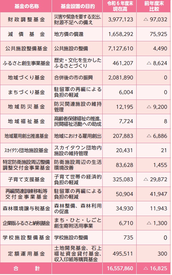 基金は「市の貯金」です。特定の目的のため、計画的に資金を積み立て、財産の維持や事業費の財源などに充てるためのものです。