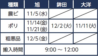 くらし 農業用使用済みプラスチック受入日 42/50 前の記事 次の記事 発行日 : 2025年11月03日 自治体名 : 茨城県鉾田市 広報紙名 : 広報ほこた 令和7年11月号 ・緑マルチは粗悪品での回収となりますので、ご注意ください。 ・搬入の際は、よく乾燥させて、泥を十分取り除き、異物が混入しないようお願いします。 問合せ:市役所 農業振興課 【電話】36-7651 Tweet シェアする お誕生日おめでとう 行政メール配信・電話サービス