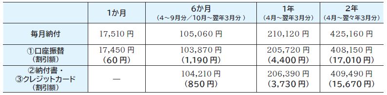 令和7年度の保険料は月額17,510円です。納付額および割引額が変更となります。