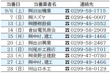 ※平日の漏水修理当番はお客様サービスセンターにお問い合わせください。【電話】0299-36-8811