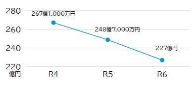 学校建設や道路整備など、大規模な建設事業には多額の費用がかかります。これをすべてその年の税金でまかなおうとすると他の事業ができなくなってしまうので、銀行などからお金を借ります。これを「市債」といいます。令和6年度末の普通会計市債残高は227億円です。教育施設の改修費用や道路建設費用等の返済が進み、前年度末から21億7,000万円減少しています。