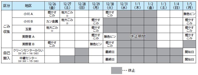 ・休止期間中の集積所へのごみ出しは、周辺の方に大変ご迷惑となります。指定収集日の当日、朝8時までに出してください。