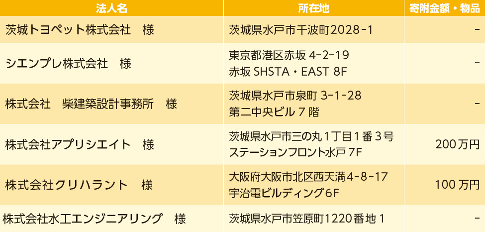 令和7年4月1日から9月30日までに「企業版ふるさと納税」としてご寄附をいただきました。