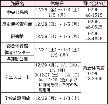 くらし 年末年始休館のお知らせ 10/17 前の記事 次の記事 発行日 : 2025年12月01日 自治体名 : 茨城県八千代町 広報紙名 : 広報やちよ 12月号(令和7年度) 町内の各施設が下記のとおり休館となります。ご不便をおかけしますが、ご理解ご協力をお願いします。 Tweet シェアする お知らせ版 No.815【お知らせ】 「クリーンポート・きぬ」年末年始のごみ受け入れ