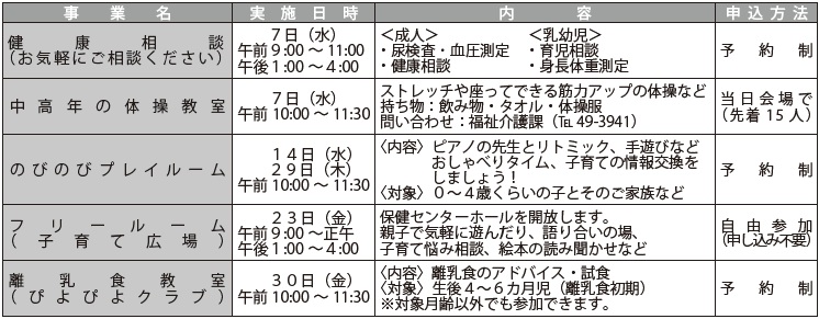 ※詳細は、令和7年度八千代町保健事業予定表をご覧ください。