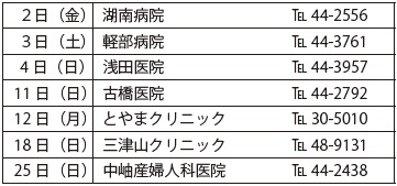 ※当番(輪番)病院は、変更になる場合があります。事前に電話で必ずご確認ください。