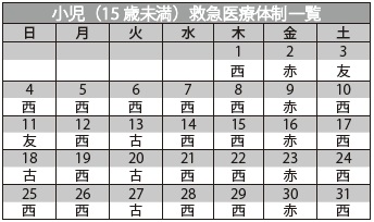 ■小児(15歳未満)救急医療体制一覧