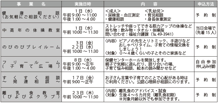 ※詳細は、令和7年度八千代町保健事業予定表をご覧ください。
